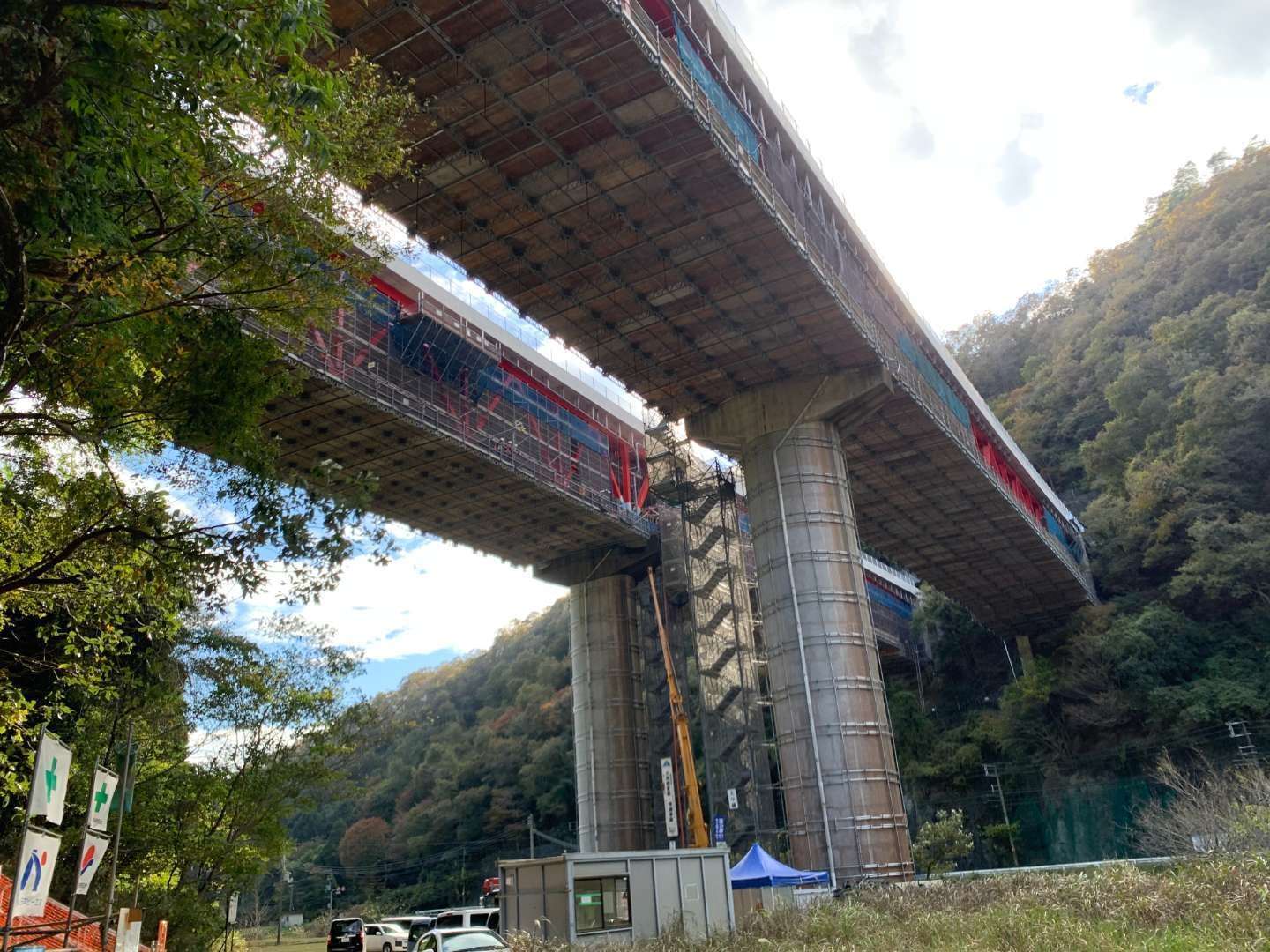ビル建設では工事が進むにつれて屋内作業が増えますが、橋梁工事は基本的に最初から最後まで屋外、それも遮蔽物のない高所での作業となります。